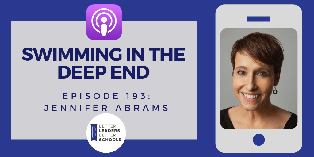 “I think that anytime we are working with adults to roll out bigger scale things in a school, in a department or in a district, we are not in the shallow end anymore.  We are looking at some work that requires a little bit more strength, a little bit more skill set and there are times when your feet aren’t touching the ground.” – Jennifer Abrams
