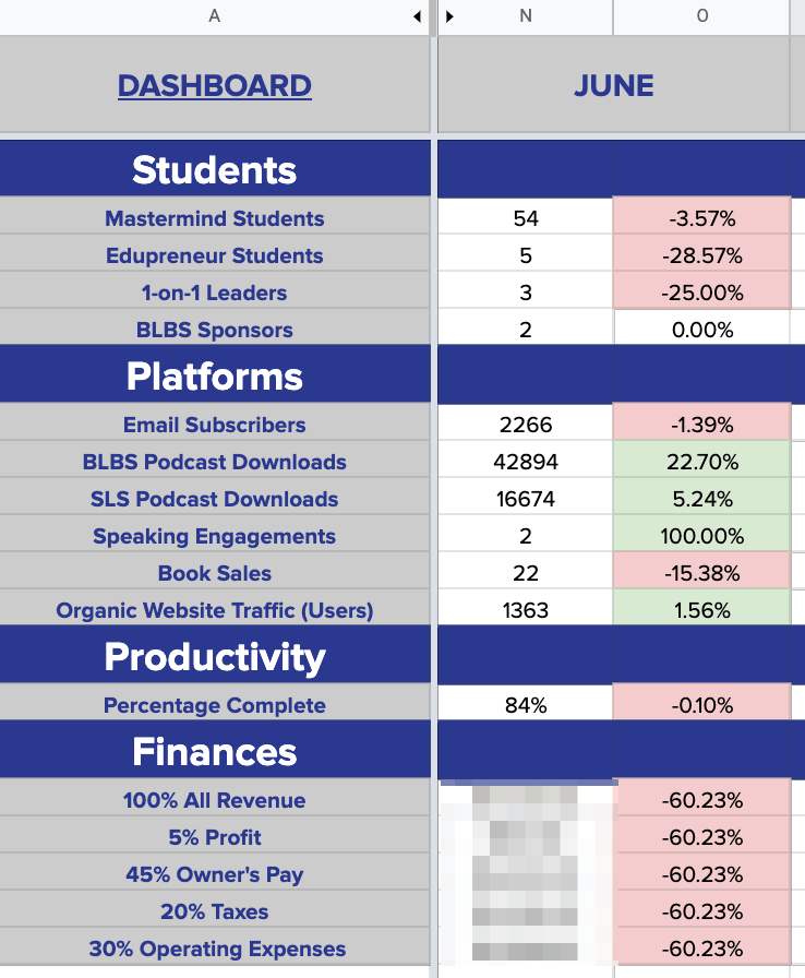 I think I might be putting attention into some goals that don’t matter (email subscribers). I also waste more time than I like to admit and do too many things I can hand off to my team. I have built a massive training/delegation doc, increased my assistant’s pay from an hourly wage to a fixed salary and will expect much more from her.