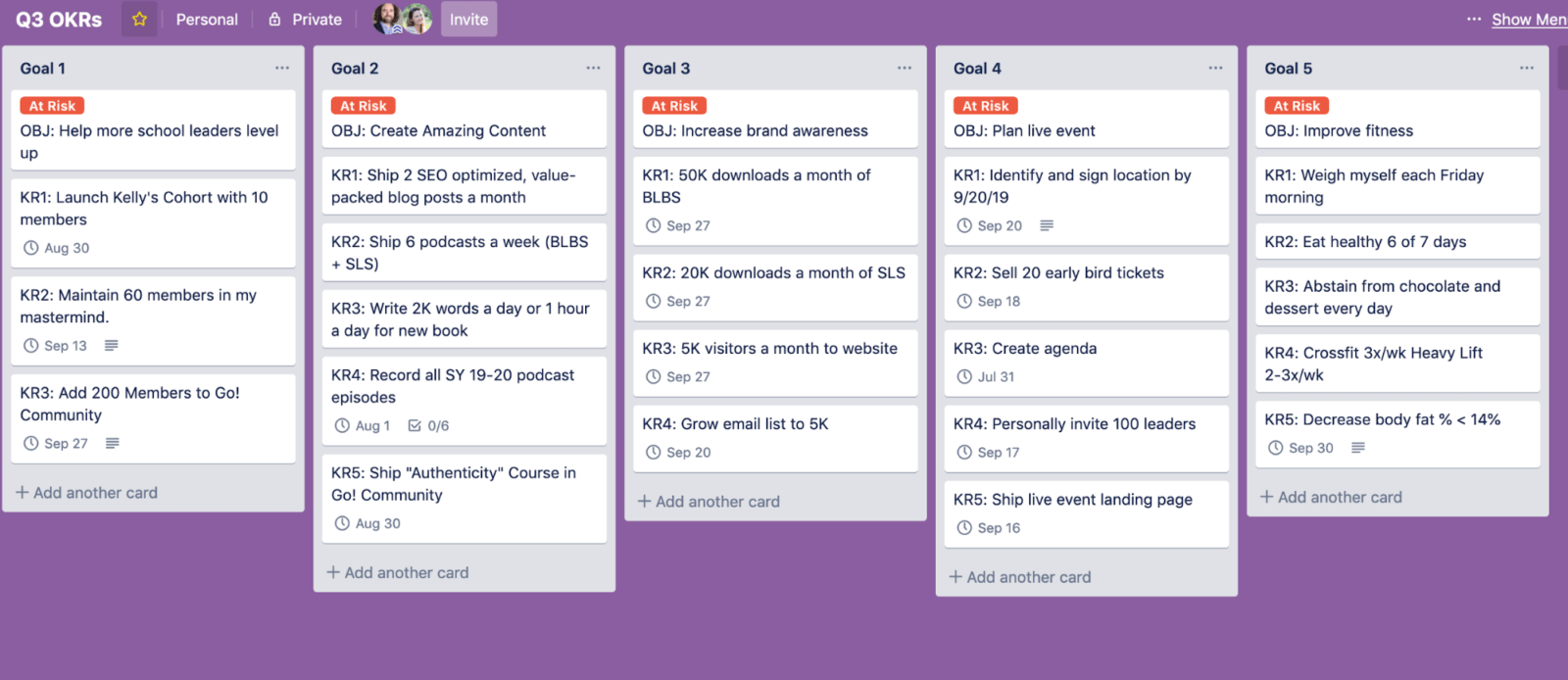 And since a picture is worth 1000 words, here are all my OKRs. I use Trello to build the cards and track …